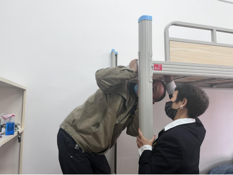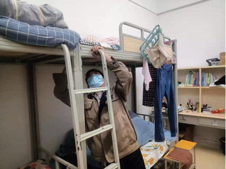 医学院某新生身高2米有余,睡觉脚伸不开。后勤公寓服务部门急学生所急,想学生所想,派专人上门,拆除床尾栏杆,为学生生活提供方便