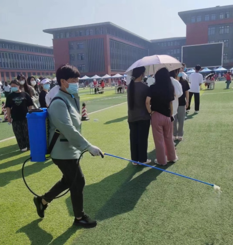 协助学校疫情防控部门设置核酸检测点,贴地标、拉警戒线、确保检测工作顺利开展。