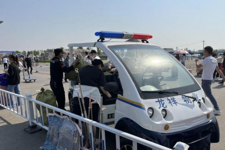 搭建爱心服务站点,行李运送车集结完毕,翘首以盼学生们的安全抵达。