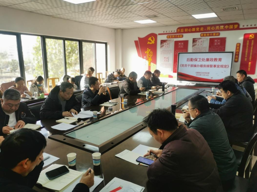11月16日,后勤保卫处党支部召开全体党员廉政教育会。集体学习《党员干部操办婚丧嫁娶事宜规定》修订。提出深入落实中央“八项规定”精神,坚决反对“四风”,破除庸俗陋习,崇尚勤俭节约,促进党员廉洁自律。会议由支部书记李忠阳主持,全体党员参加会议。