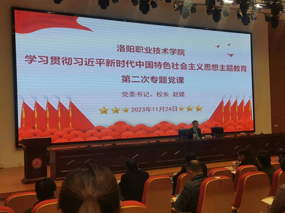11月24日,我校在大学生活动中心一楼学术报告厅举行学习贯彻习近平新时代中国特色社会主义思想主题教育第二期专题党课。党委书记、校长赵健作专题讲课。会议以线上线下相结合的形式进行,后勤保卫处党支部组织全体职工在各校区线上线下观看学习。