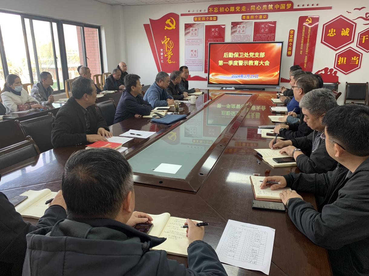 为贯彻落实全面从严治党要求,充分发挥典型案件的警示教育作用,做到以案明纪、警钟长鸣,教育引导党员干部知敬畏、存戒惧、守底线,不断增强责任担当和廉洁自律意识,积极营造风清气正的育人环境。后勤保卫处党支部高度重视本次警示教育活动,于3月29日上午,在伊滨校区后勤党建活动室组织全体党员开展第一季度警示教育,大会由陈小刚同志主持,全体党员集体观看警示教育片。
