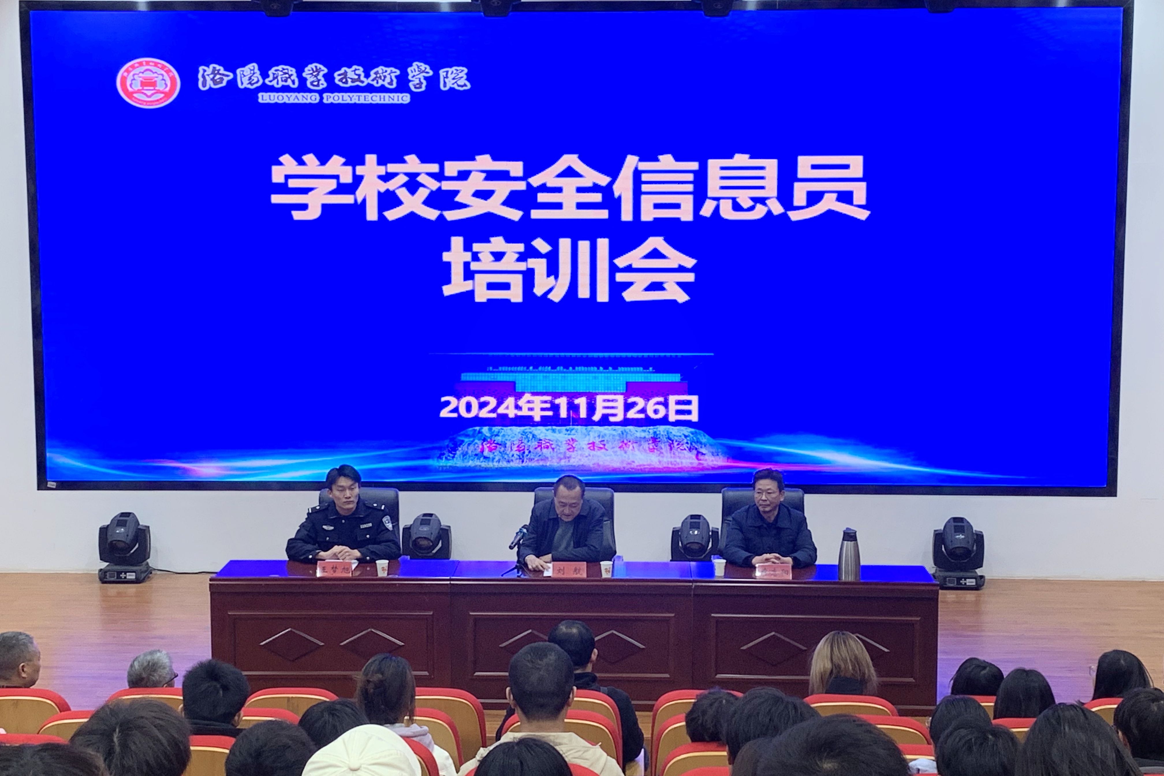 11月26日下午,为进一步加强校园安全管理,切实维护学校安全稳定,在大学生活动中心二楼心理剧场召开2024年安全信息员工作培训会。副校长刘航、李村派出所民警王梦旭及师生安全员代表参加会议。