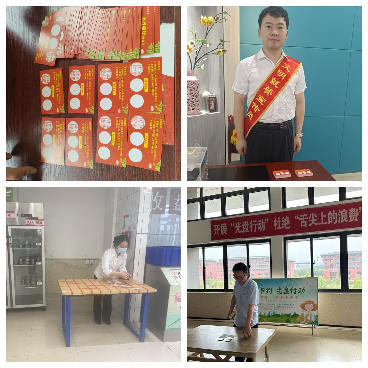近日,为弘扬勤俭节约的优良传统,引导广大师生反对浪费、节约粮食,养成健康文明生活习惯,5月13日至30日,在伊滨校区各餐厅开展了“校园光盘风 文明‘食’尚浓”光盘行动主题宣传教育活动。此次活动吸引了全校师生的广泛参与,在校园内掀起了一股节约粮食的热潮。